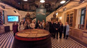 A nap zárásaként a Zwack múzeumba látogattunk el, amelyet Puskel Erzsébet, a Zwack Unicum Nyrt. minőségirányítási rendszerek- és ESG vezetője mutatott be nekünk. A Zwack ESG tevékenységének rövid ismertetése után egy látványos videón keresztül tudhattunk meg többet a Zwack Unicum történelméről. Ezután bejártuk a pincerendszert, és egyenesen a hordókból kóstolhattuk meg a különböző Unicumokat.