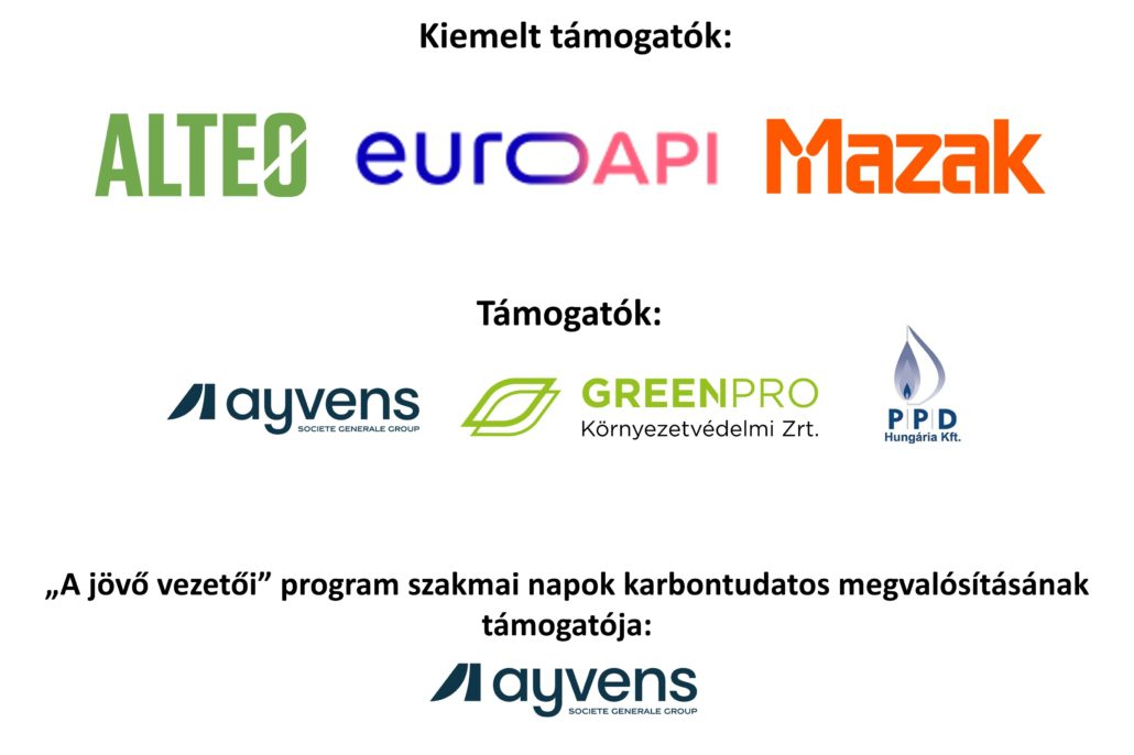 ALTEO Energiaszolgáltató Nyrt., Ayvens | LeasePlan Hungária Zrt., BKM Budapesti Közművek Nonprofit Zrt., Budapest Airport Zrt., Coface Hungary Services Kft., Continental Automotive Hungary Kft., E.ON Dél-dunántúli Áramhálózati Zrt., Ernst & Young Kft., EUROAPI Hungary Kft., Generali Biztosító Zrt., Grundfos Kft., Güntner-Tata Hűtőtechnika Kft., Jász-Plasztik Kft., KPMG Tanácsadó Kft., LeasePlan Hungária Zrt., MVM Zrt., Nestlé Hungária Kft., Prímaenergia Zrt., Progress Étteremhálózat Kft., Richter Gedeon Nyrt., Siemens Energy Kft, SPAR Magyarország Kft., Yamazaki Mazak Central Europe s.r.o. Magyarországi Fióktelepe, Yettel Zrt.
