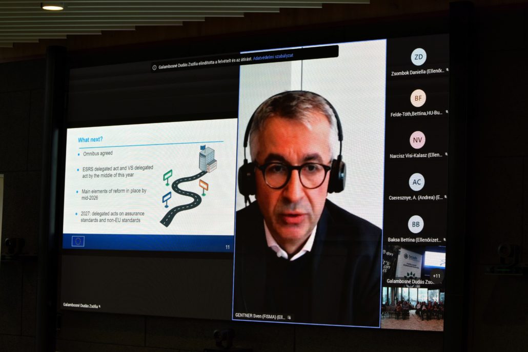The main topic of the event was the latest developments in the European sustainability reporting system. Mr. Sven Gentner, Head of Unit at the European Commission’s DG FISMA, gave an overview of the background and expected impact of the changes in an online presentation. In his presentation, he gave a brief overview of the results of EFRAG’s work, which aims to make corporate reporting obligations more proportionate and manageable. In addition to highlighting the most important deadlines, he also answered questions from participants.