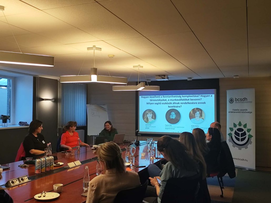 Irén Márta moderated a discussion with Éda Pogány, Regional Sustainability Lead at Syngenta Europe, and Ibolya Szabó on managing the complexity of sustainability, raising awareness across different departments, and the long-standing as well as emerging challenges of employee engagement.