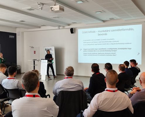 A házigazda Siemens Energy fenntarthatósági programját, eredményeit és célkitűzéseit Skrinyár Mónika, a vállalat EHS vezetőjének bemutatójából ismerhették meg a résztvevők. Vállalati stratégiájukba beépül fenntarthatósági programjuk, amelynek fókuszában a dekarbonizáció és a felelős működés állnak.